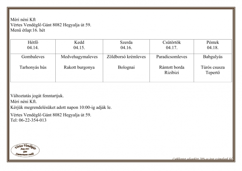 16. Heti menüajánlatunk